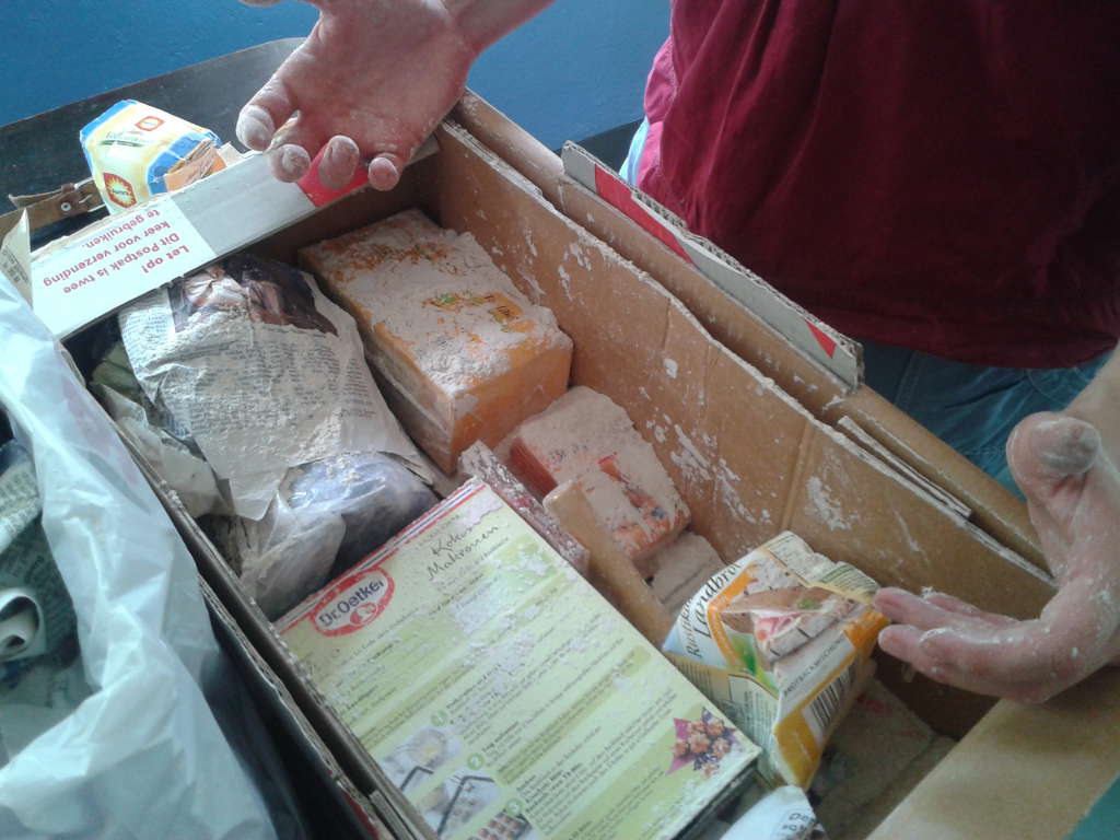 Das erste Päckchen war so gut in Paketband gewickelt, dass es den Zoll unbeschadet überstanden hat. Paket No. 2 war größer und somit wahrscheinlich interessanter. Der kenianische Zoll hat hineingeschaut, bei der Arbeit leider eine der Backmischungen geöffnet – der Inhalt staubte dann im Paket herum. Daneben mussten wir das Paket für KSH 2000.- (€20.-) auslösen – Zoll Bearbeitungsgebühr…